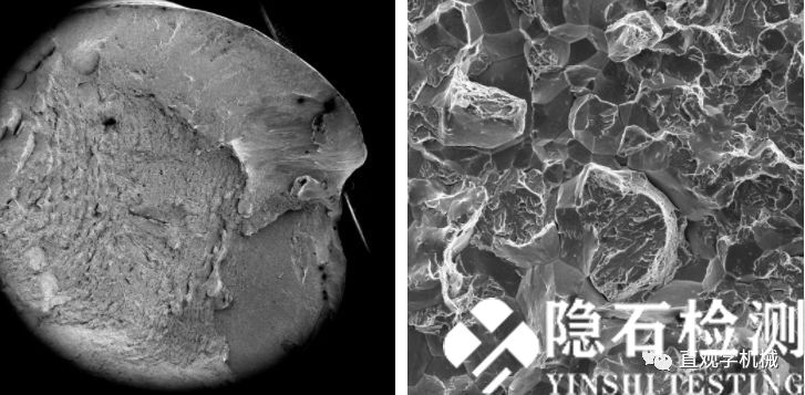 金属断口通常是一个凹凸不平的粗糙面,而且是块状样品,取样容易,在扫描电镜的样品仓中可进行倾斜旋转多角度观察,因此扫描电镜非常适合断口分析。